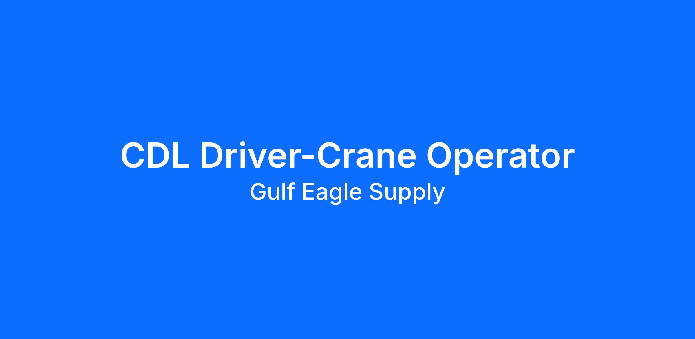 If you are a driver looking to establish a career with one of the top Building Supply Distributors Nationwide, then Gulfeagle has the job for you. Our drivers are responsible for safely driving the most efficient route to the job site, while observing and obeying all traffic laws and safety regulations as well as company policies/procedures. They assist in loading and/or securing materials on trucks daily and help unload materials by using crane, conveyor, piggybacks and/or by hand. Gulfeagle drivers are the face of our Company on the jobsite as they lead, instruct, and supervise others.We take pride in delivering the highest quality and best value to our customers and would be pleased to make you a part of that mission. Here at Gulfeagle we are "Building a Career for YOU"Requirements:
