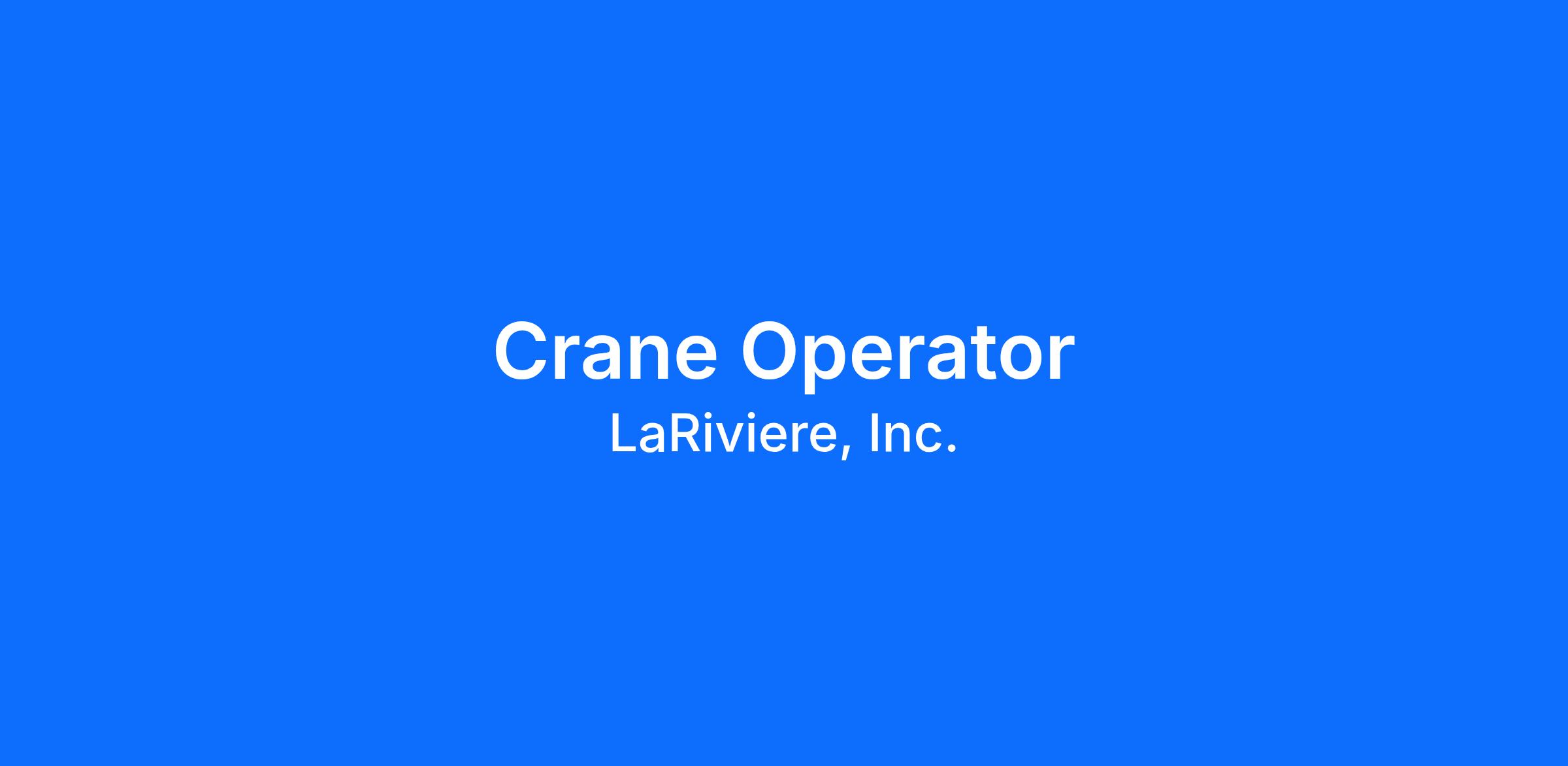 LaRiviere, Inc. is looking for a skilled crane operator for heavy civil work in the North Idaho / Eastern Washington Region. This a field position at job sites around the region.
