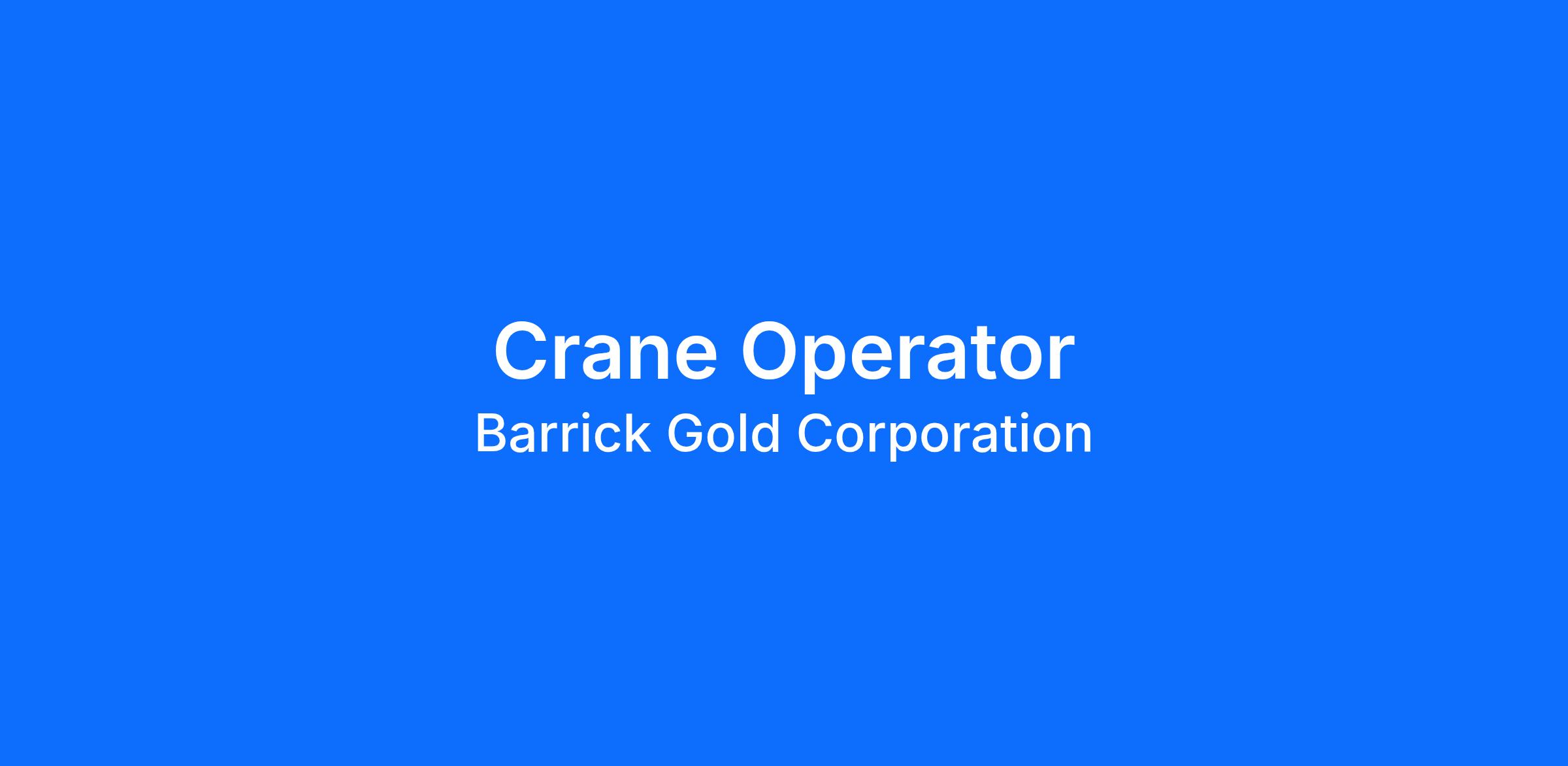 Lumwana Mining Company seeks to recruit a highly motivated and committed employee for the position of Crane Operator to join the versatile Process Department. We are in search of individuals who can champion Barrick's DNA by: