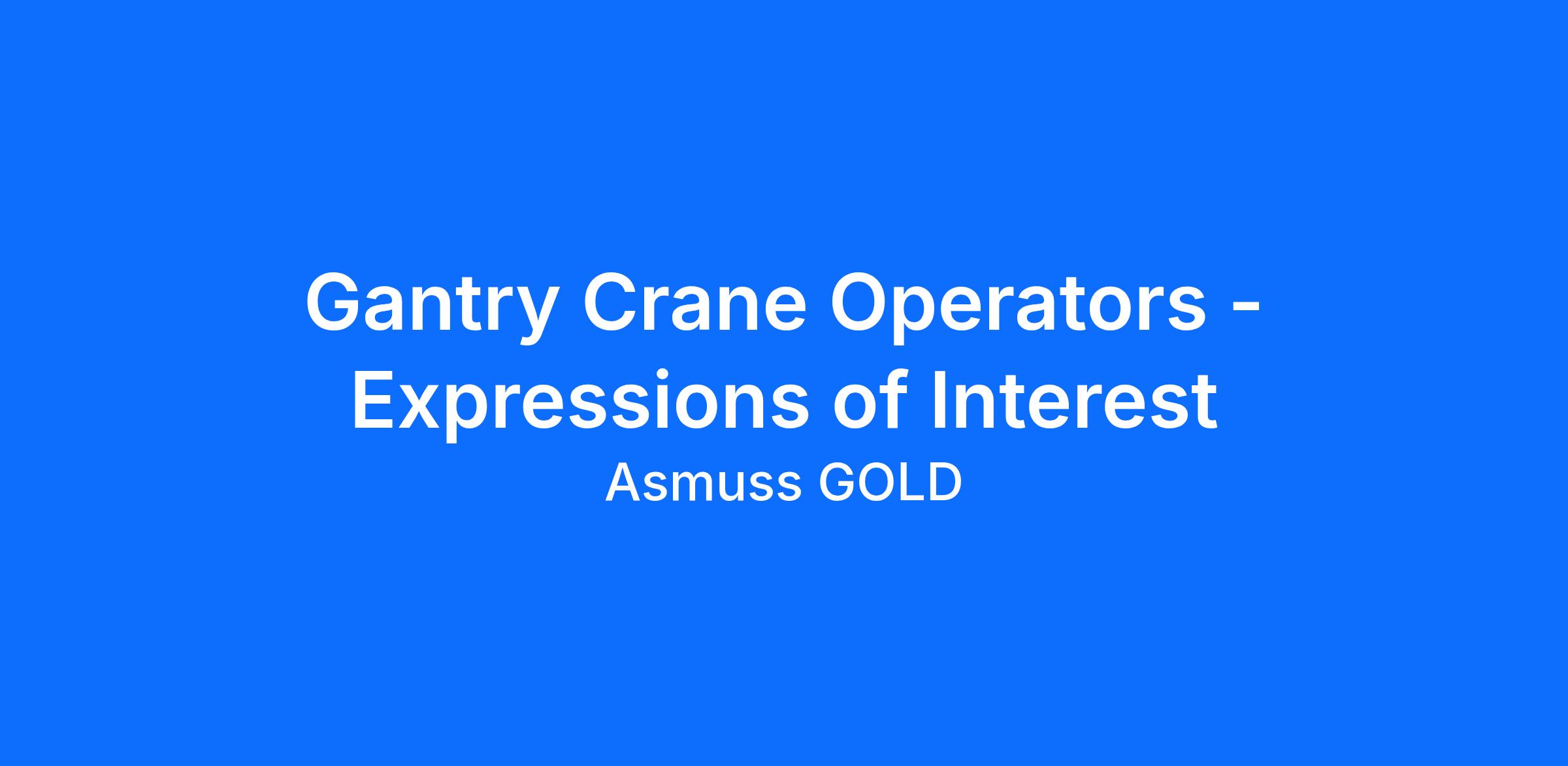 As part of our ongoing recruitment strategy, we are seeking Expressions of Interest (EOI) from experienced Gantry Crane Operators who would like to be considered for current and upcoming opportunities across our Asmuss sites.
